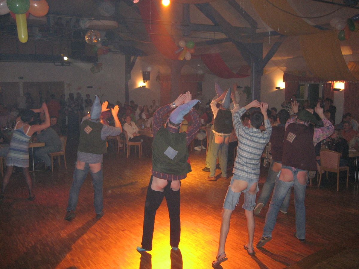 Leicht vom Original abweichend tanzten homosexuelle Zwerge, Hänsel und seine dienstbietende Gretel gemeinsam "den schönsten Arsch der Welt".